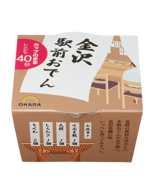 - 本格的な金沢おでんが、カップのままレンジで40秒加熱するだけでお召し上がりいただけます。