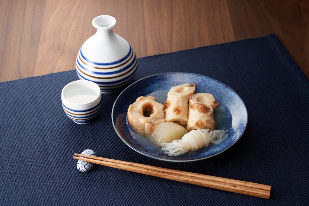 - 焼ちくわ(卵・大豆・豚肉を含む)(国内製造)、水煮大根、結びこんにゃく、白だし(食塩、しょうゆ(小麦を含む)、砂糖、その他)、くるま麩、いかいしる/加工でん粉、酒精、調味料(アミノ酸等)、水酸化カルシウム(こんにゃく用凝固剤)